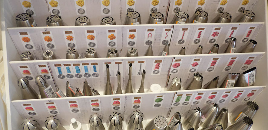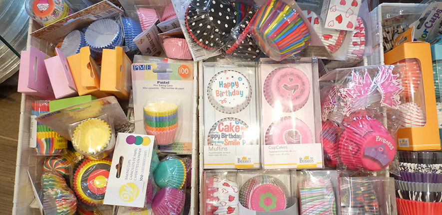 Backformen, Backbleche, Ausstechformen, Fondant, Spritztüllen, Werkzeuge zum Modellieren, und, und, und. Einen Überblick über unser Sortiment bekommst Du in unserem Online-Shop!