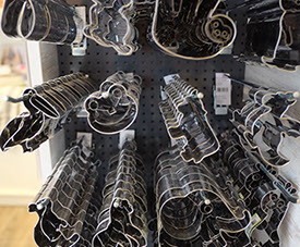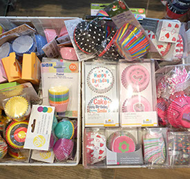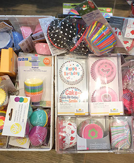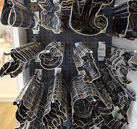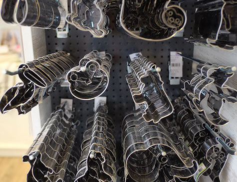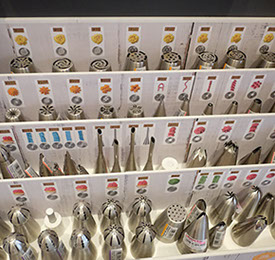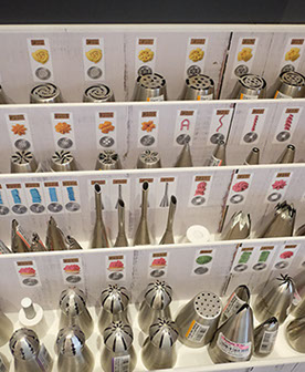 Backformen, Backbleche, Ausstechformen, Fondant, Spritztüllen, Werkzeuge zum Modellieren, und, und, und. Einen Überblick über unser Sortiment bekommst Du in unserem Online-Shop!