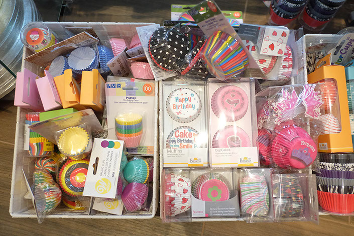 Backformen, Backbleche, Ausstechformen, Fondant, Spritztüllen, Werkzeuge zum Modellieren, und, und, und. Einen Überblick über unser Sortiment bekommst Du in unserem Online-Shop!